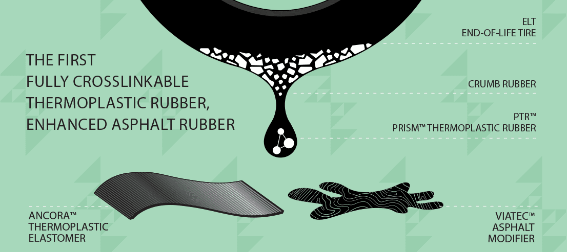 Prism’s process converts crumb rubber from used tires into sustainable polymer intermediates by partially reversing chemical bonds.